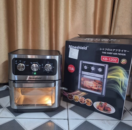 NINESHIELD 12.5L KB-1202 Sử dụng không khí nóng kết hợp với lưu thông không khí tốc độ cao. Các thành thực phẩm được làm nóng từ mọi phía cùng một lúc mà không cần thêm dầu trong hầu hết các trường hợp