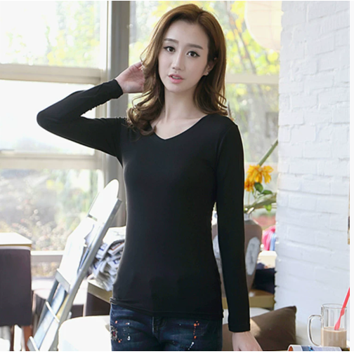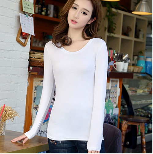 Quần áo nữ mới 2025 áo thun nữ tay dài màu đen trắng mùa xuân quần áo thu áo thun nữ quần áo lụa sữa ôm sát ebay